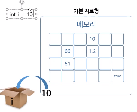 기본 자료형은 데이터가 변수에 직접 저장됨