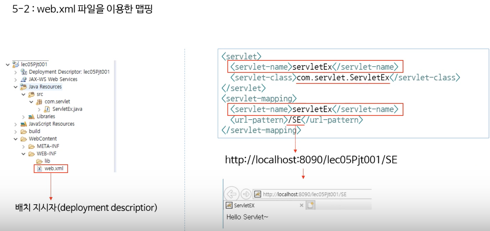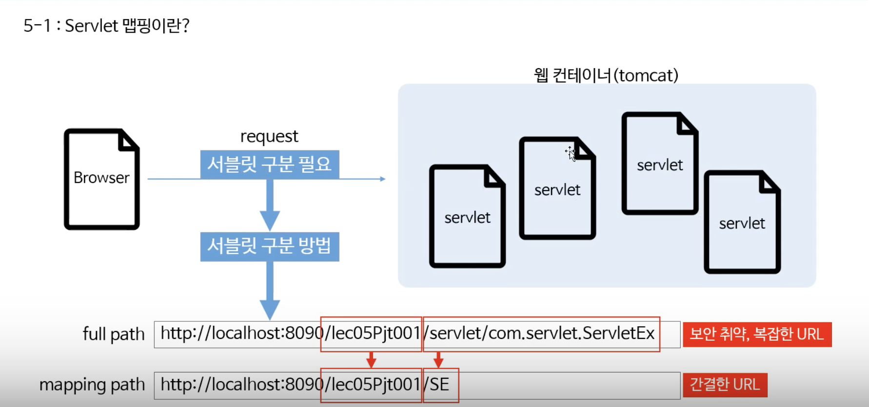 - 브라우저에서 웹컨테이너 쪽에 request를 날릴때 어떤 서블릿이 필요한지 알아야 하니깐 구분이 필요한 것