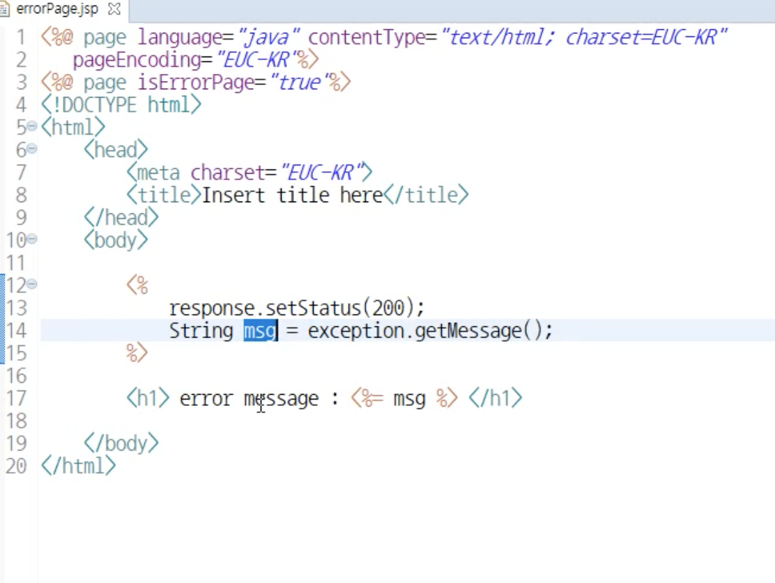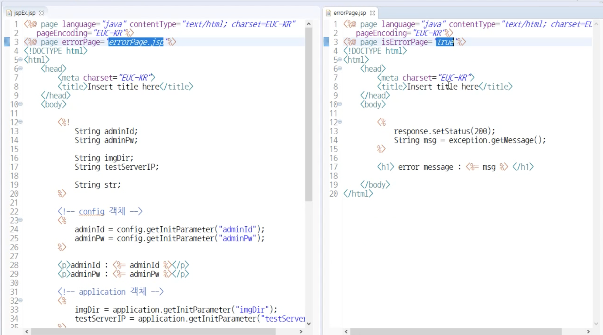 -> errorPage.jsp에서는 isErrorPage = "true"로 명시해줘야 함