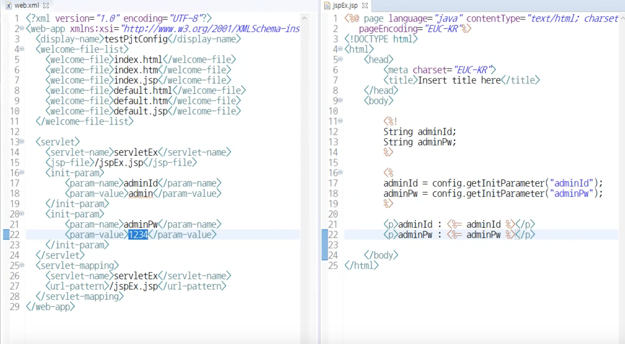 웹 환경설정인 web.xml에 어떠한 데이터를 저장해놓고 getInitParameter()해서 jsp에서 코드를 공유하는 것