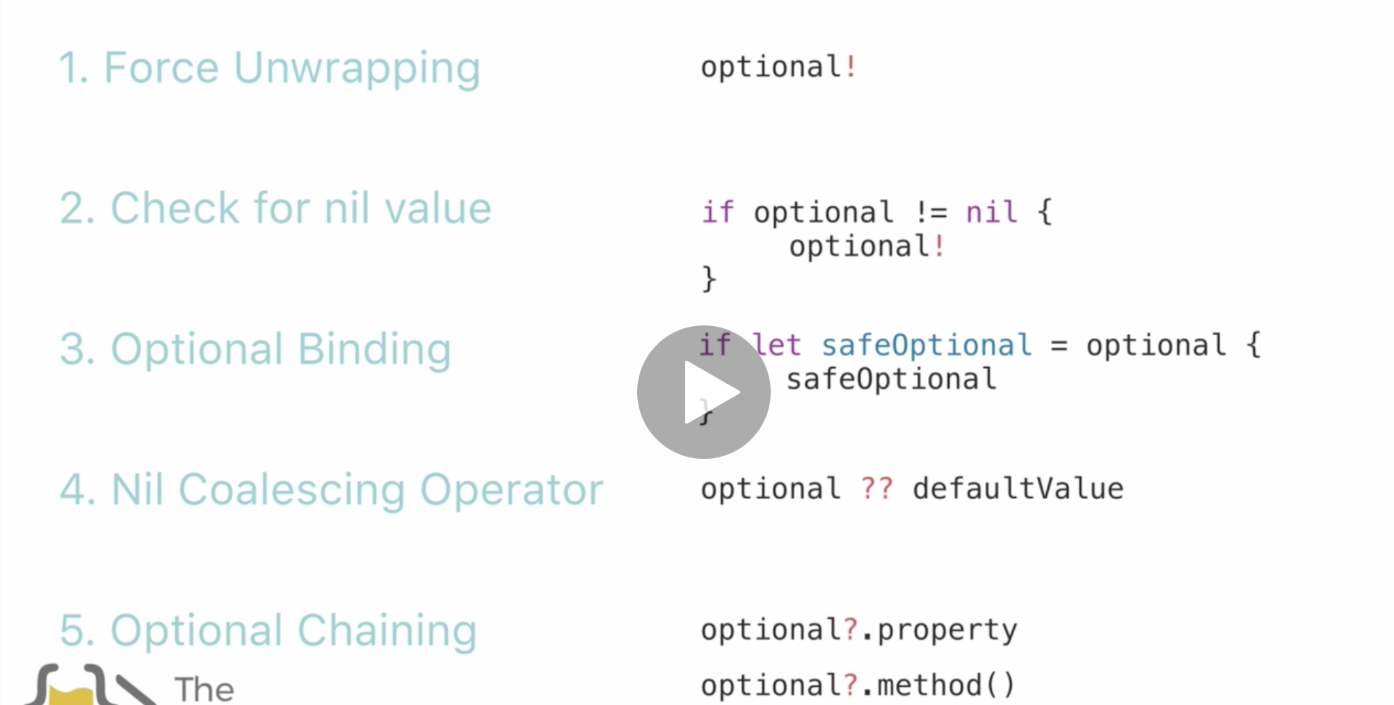 - 옵셔널로 선언하면 해당 변수에 바로 접근 불가함. -> 그래서 위 5가지 사용해서 접근해야 함