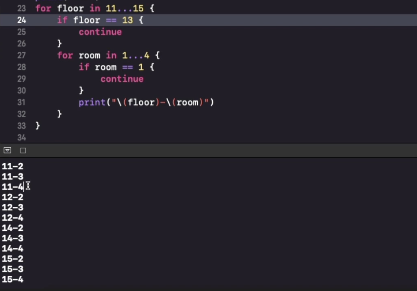 원래라면 12층의 룸 3번째부터 안나왔으면 좋겠는데. 그냥 room loop안에서 선언하면. 컨티뉴하면 그 loop만 건너뛰니깐