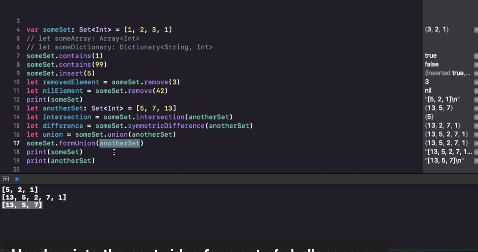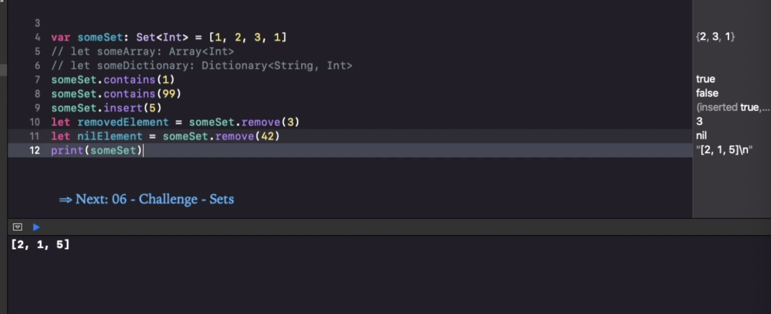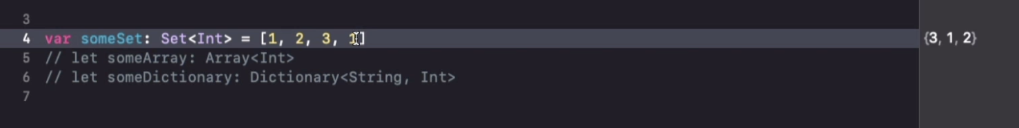 constant로 선언하면 아무 요소도 삽입할 수 없음 let someSet: Set<Int>