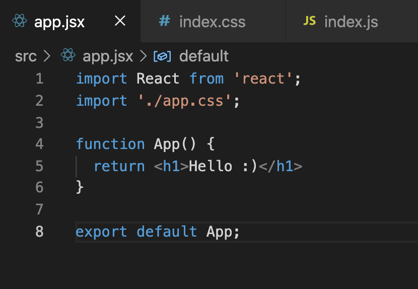 jsx 확장자를 쓰면 리액트 컴포넌트라는 것을 알 수 있음.