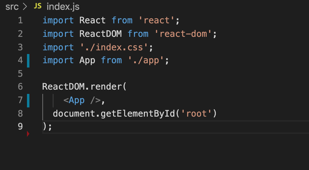순수 자바스크립트 index.js의 import. ReactDOM.render()