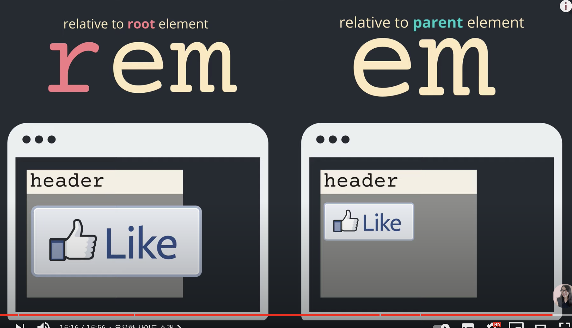 em과 rem 둘 중한가지만 사용하는게 아님! 적절히 골라서 사용함