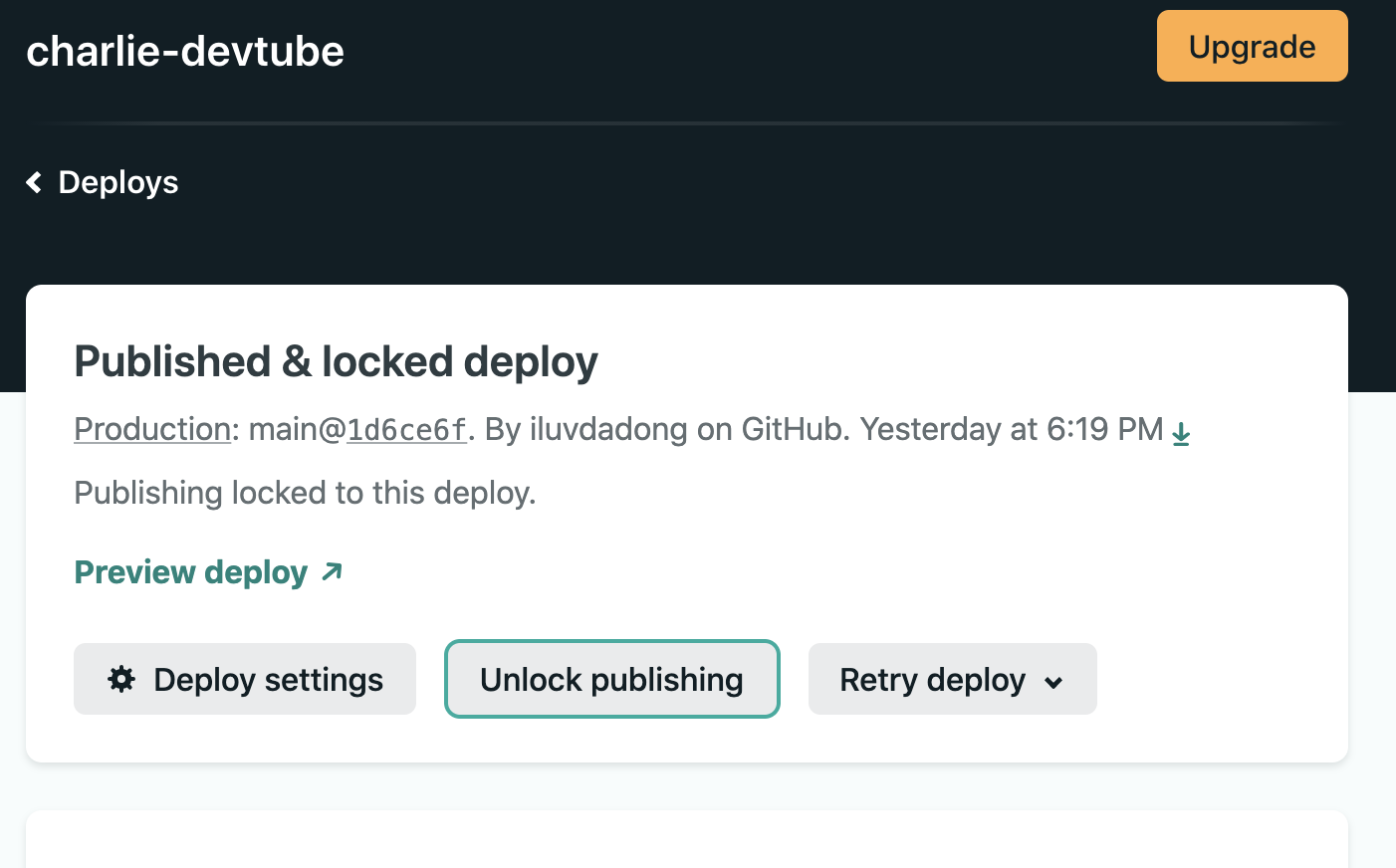 netlify에서 정상적으로 작동하는 deploy 버전으로 새로 띄우고 stop auto publishing으로 설정했다.