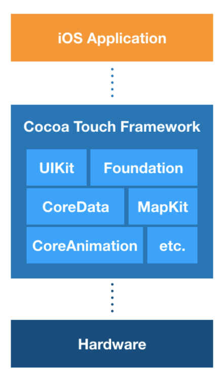 - 보통 iOS개발할 때 이 코코아터치 프레임워크를 사용 많이함. => UIKit, Foundation, Coredata, MapKit등이 있음