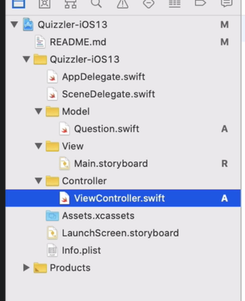- QuizBrain에 들어갈 데이터타입인 struct Question 정의하는 Question.swift파일도 있다.