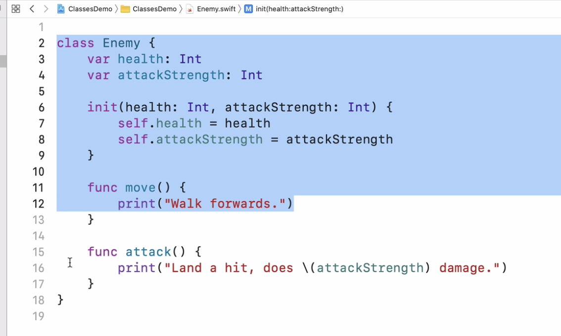 - let skeleton1 = Enemy(health: 100, attackStrength: 10)