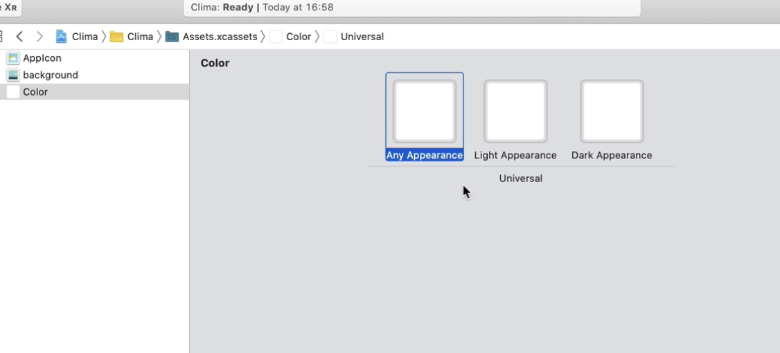 - 만약 커스텀 컬러를 원한다면? Assets 에서 Color Set을 추가하고 라이트모드, 다크모드일 시에 컬러를 커스텀으로 설정가능