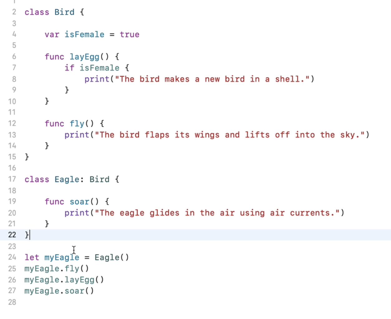 - class Eagle: Bird, CanFly {