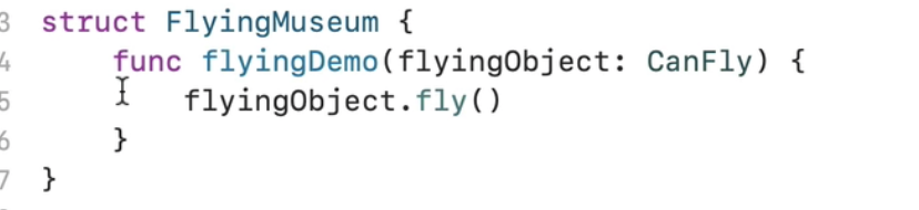 struct FlyingMuseum에서 flyingDemo의 파라미터 타입을 CanFly 프로토콜 타입으로 정했기 때문