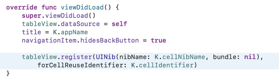 - viewDidLoad()에 xib파일을 레지스터한다.