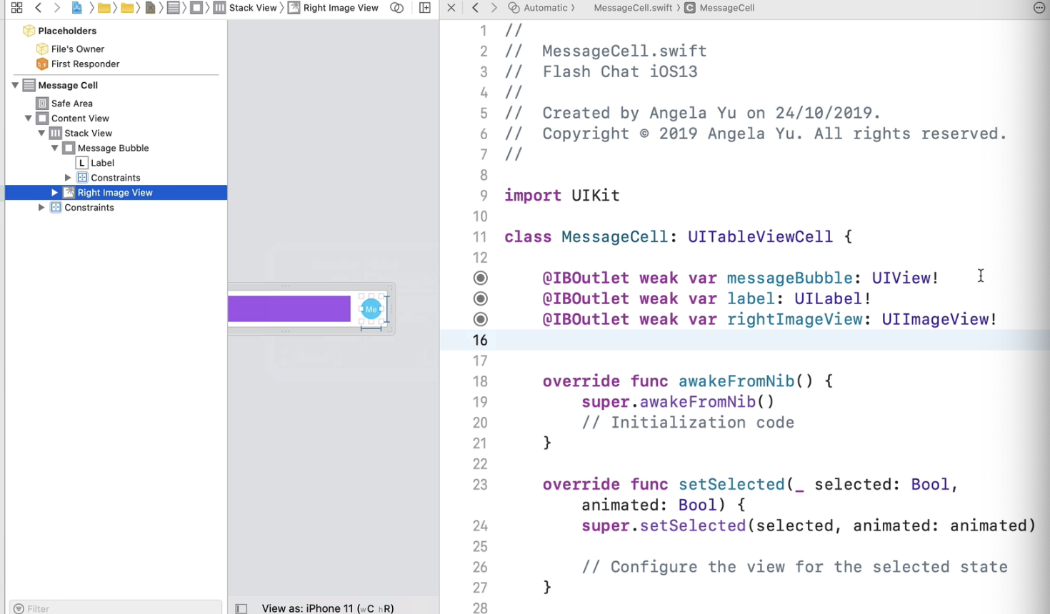 - override func awakeFromNib()에 messageBubble.layer.cornerRadius 설정