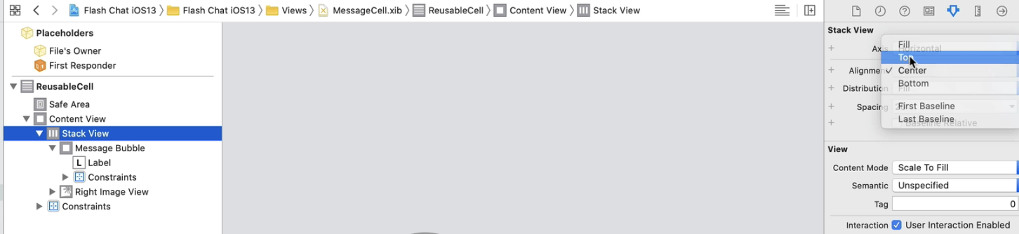 - stack view 선택해서 정렬을 탑으로 하면 이렇게 된다. 위쪽으로 붙어서 개체들이 정렬된다.