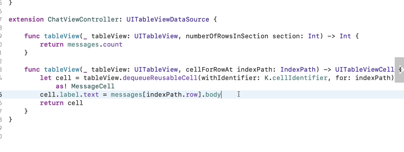 - cell에 우리가 messageCell로 캐스팅해서 사용해야함! as MessageCell로 캐스팅함!