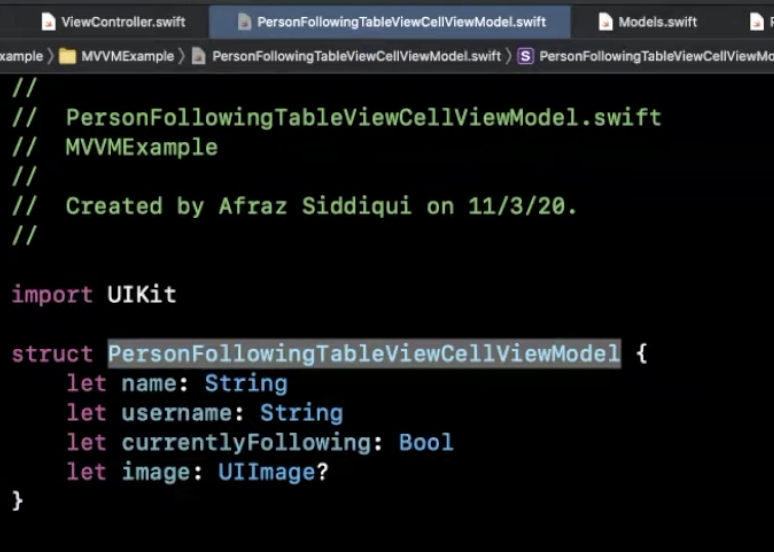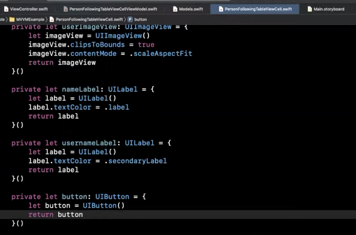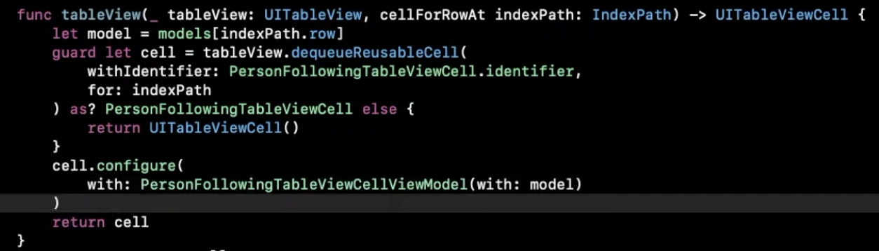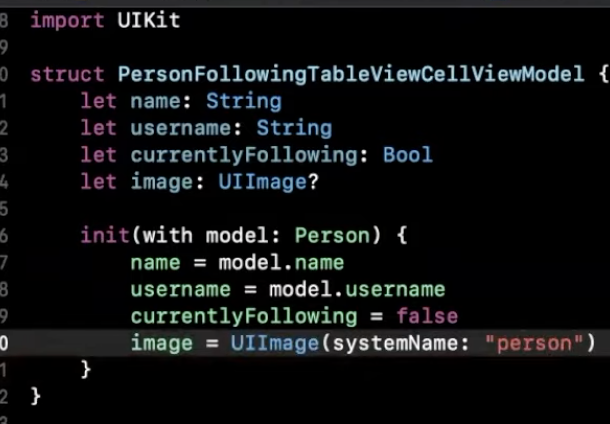 PersonalFollowingTableViewCellViewModel.swift 에서는 해당 셀과 관련한 모델만 있다.