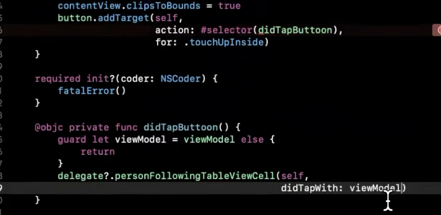 위 코드에 cell.delegate = self 추가 하고 아래 extension 추가