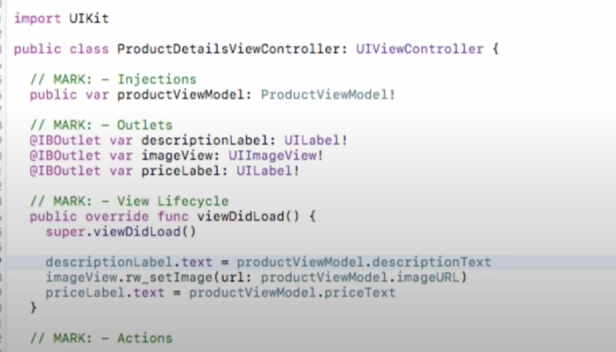 그리고 뷰컨트롤러에는 ViewModel에 있는 property나 메소드를 사용한다.