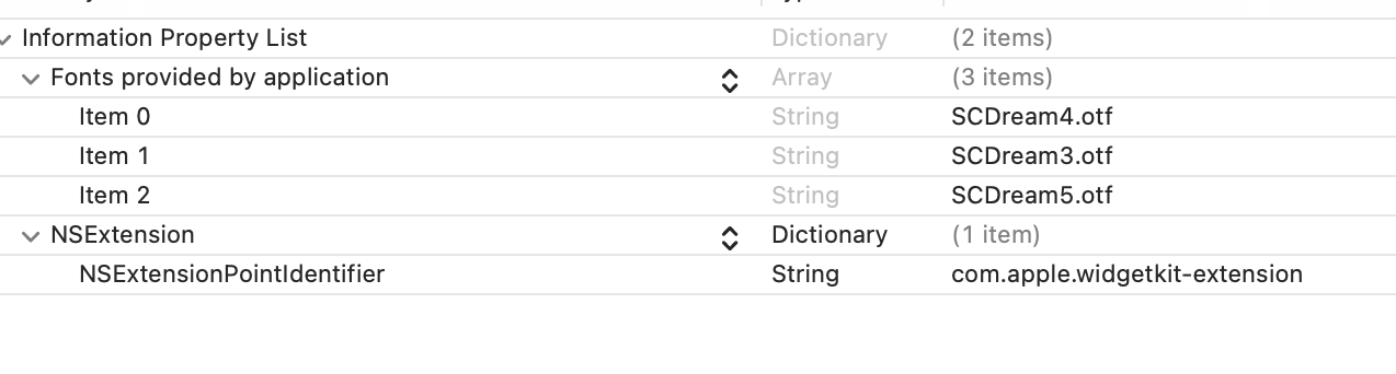 => 이때 주의할 점은 SwiftUI로 개발한 Widget프로젝트에도 info.plist가 따로 있으니 여기도 따로 추가 해줘야 한다는 것이다.