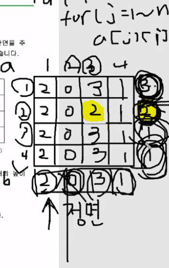 1 1 2 3 측면 블럭 개수 입력 받을때 반대로 받는다.