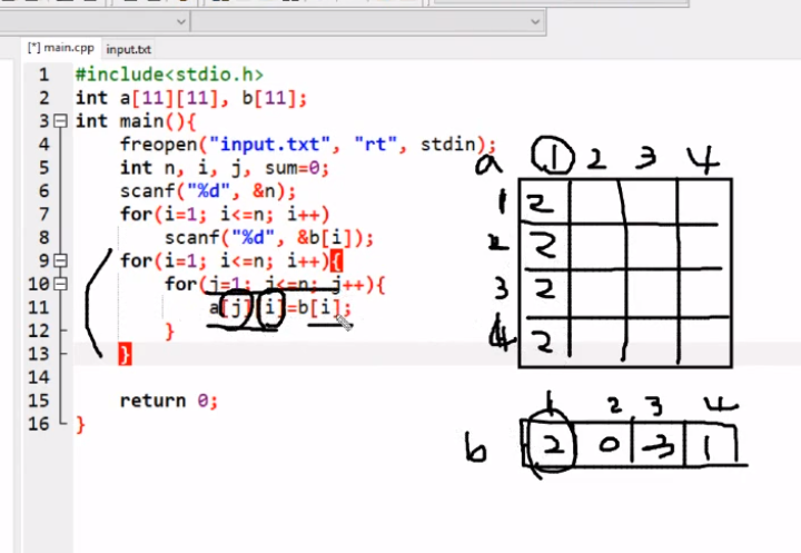 a[j][i] = len[i];