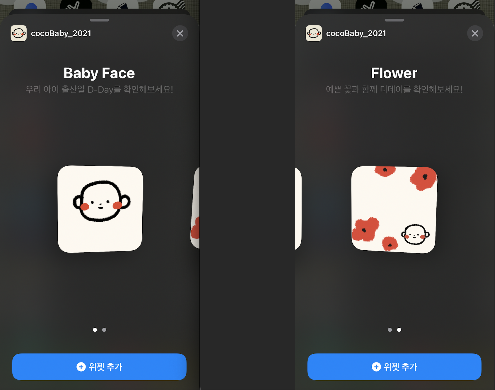 2가지 디자인 타입의 같은 사이즈의 위젯이 구현된 것을 볼 수 있습니다.