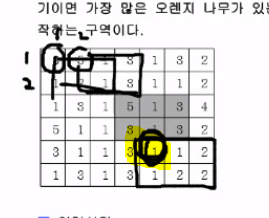 2)해당영역이 최대 개수의 오렌지 나무를 가지는지 알아봐야 함