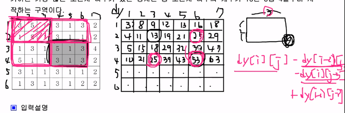 * 수가 적다면 4중 for문으로 주어진 행렬에서 일부 행렬의 합을 구할 수 있다.