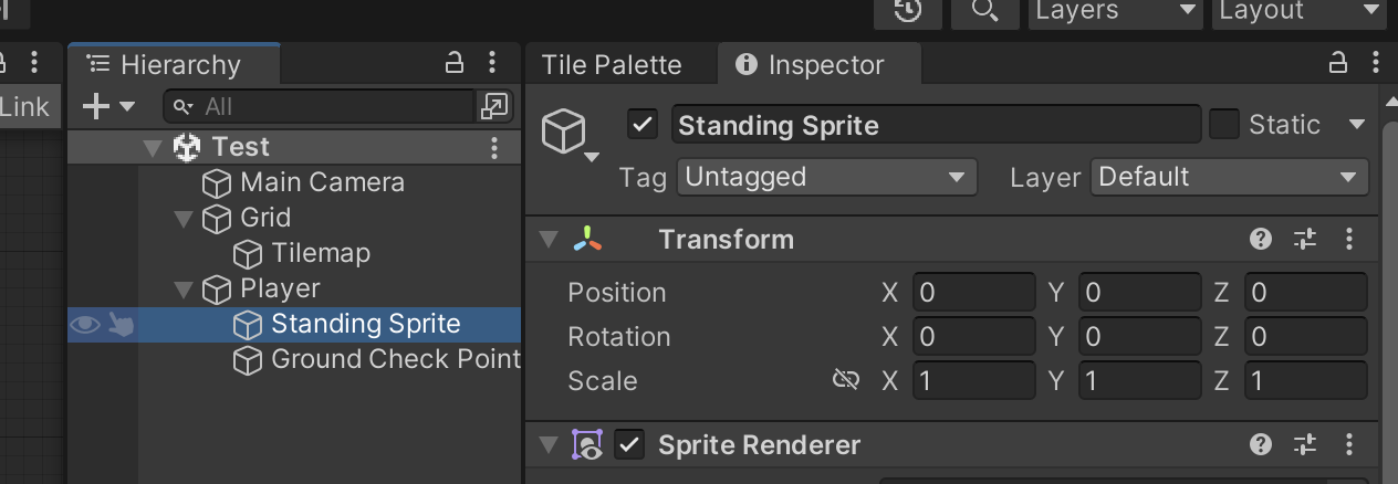 -> 해결 방법은 Standing Sprite의 Position X, Y, Z가 0, 0, 0에 위치하면 된다.
