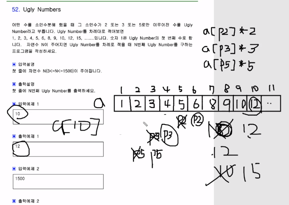 - Ugly Number를 차례대로 적어보면 1, 2, 3, 4, 5, 6, 8, 9, 10, 12, 15, .......입니다. 숫자 1은 Ugly Number의 첫 번째 수