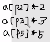 ex. 최초에 a[p2], a[p3], a[p5]은 모두 a[1], a[1], a[1]이기 때문에 a[1]에는 1값이 들어가있어서