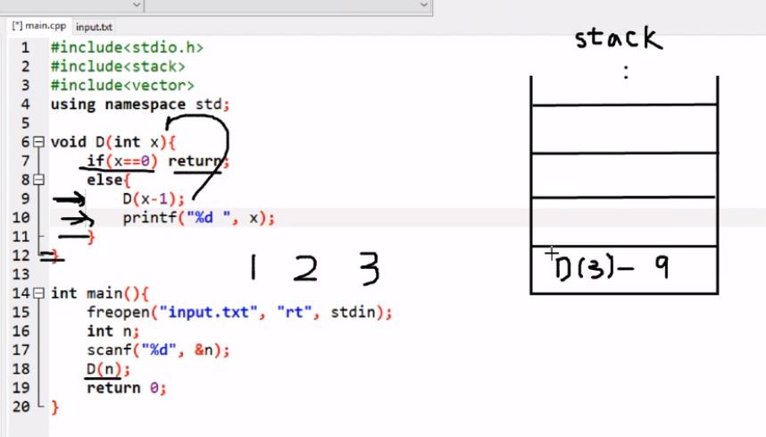 자연수 N이 주어지면 재귀함수를 이용해서 아래와 같이 출력하시오.