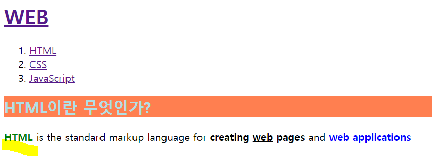 <h2 style="color:powderblue;background-color:coral">HTML이란 무엇인가?</h2>