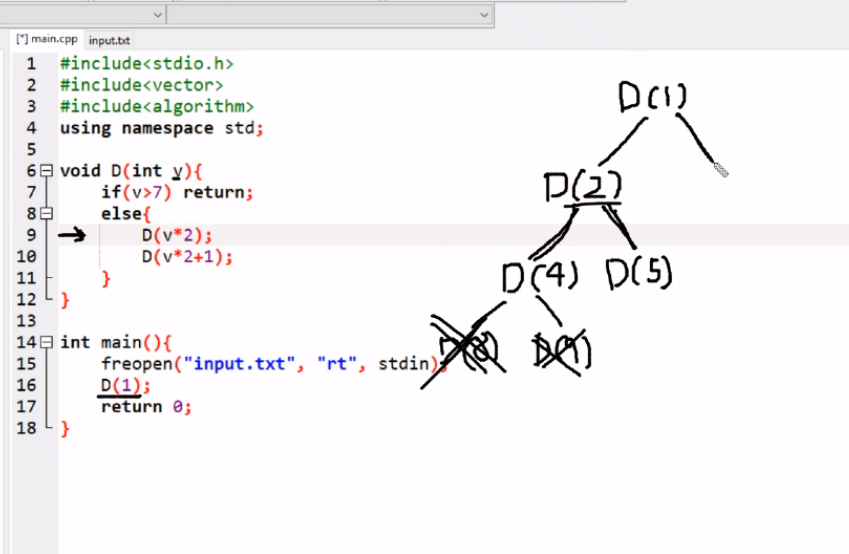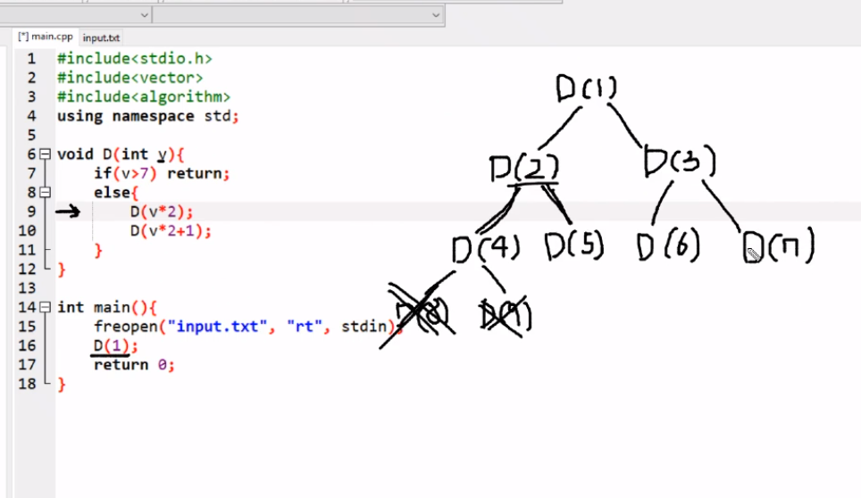- 9번 라인까지 기억되고 넘어감, 재귀가 다 끝나면 10번라인으로 가서 마저 처리해줌