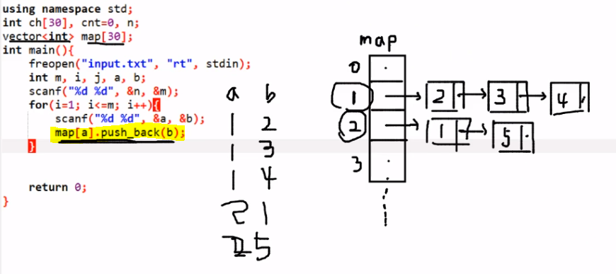 map[a].push_back(b);