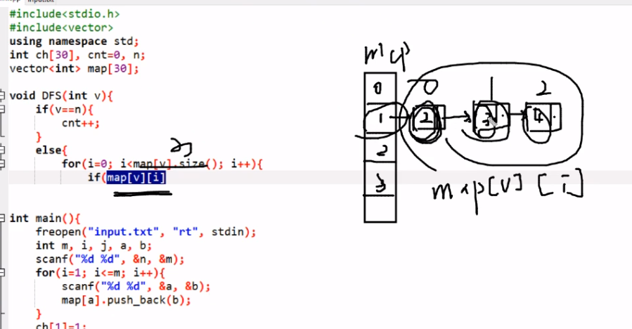 for (int i = 0; i < map[v].size(); i++) {