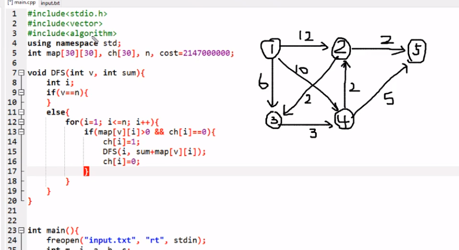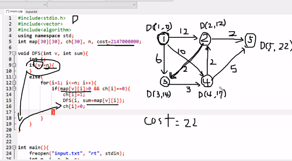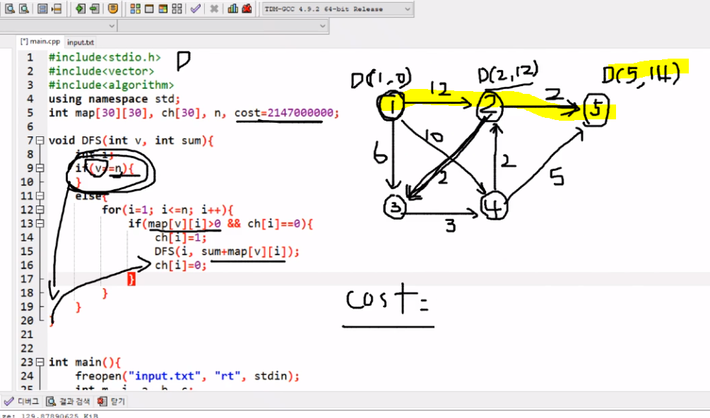 DFS(1, 0); //두번째 파라미터는 비용값