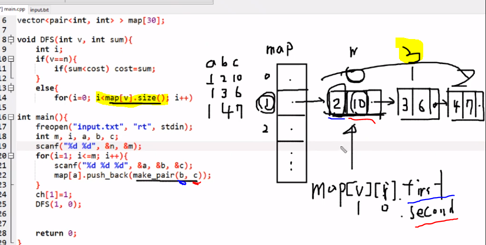* pair 활용하여 인접리스트 만드는 핵심 코드