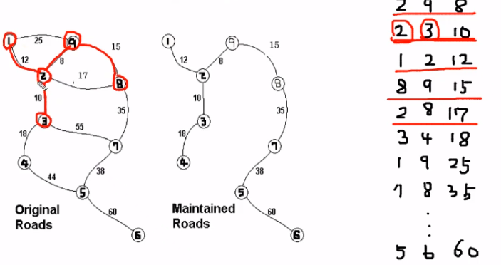 1. 먼저 간선을 가중치 값으로 오름차순으로 정렬한다.