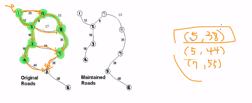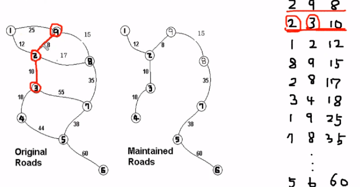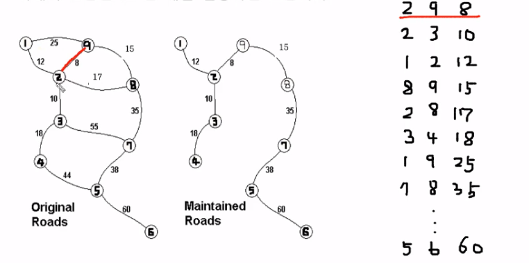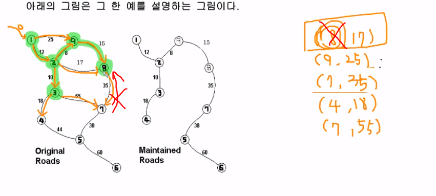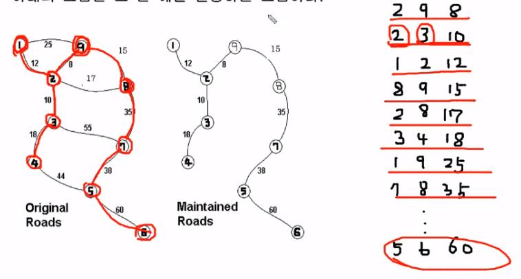 최소비용신장트리를 만드는 과정에서 간선의 가중치값을 오름차순으로 하고