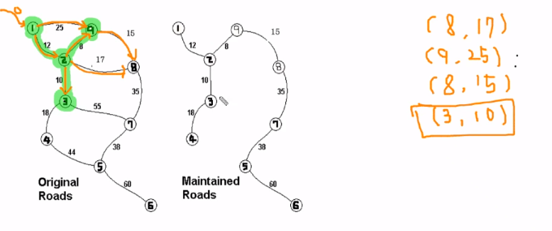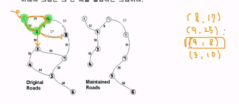 6. 이미 2번과 8번 정점은 연결되어 있는 상태이기 때문에 선택하지 않는다.