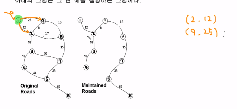 3. 1번 정점을 출발정점으로 하고 우선순위 큐에 넣는다. 한쌍으로.