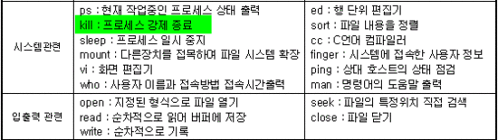 1. UNIX에서 현재 실행중인 프로세스를 삭제하기 위한 명령어는? 2
